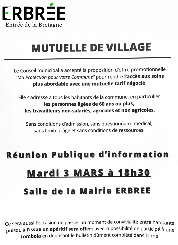 Mutuelle de Village – Réunion publique le 3 mars à la Mairie