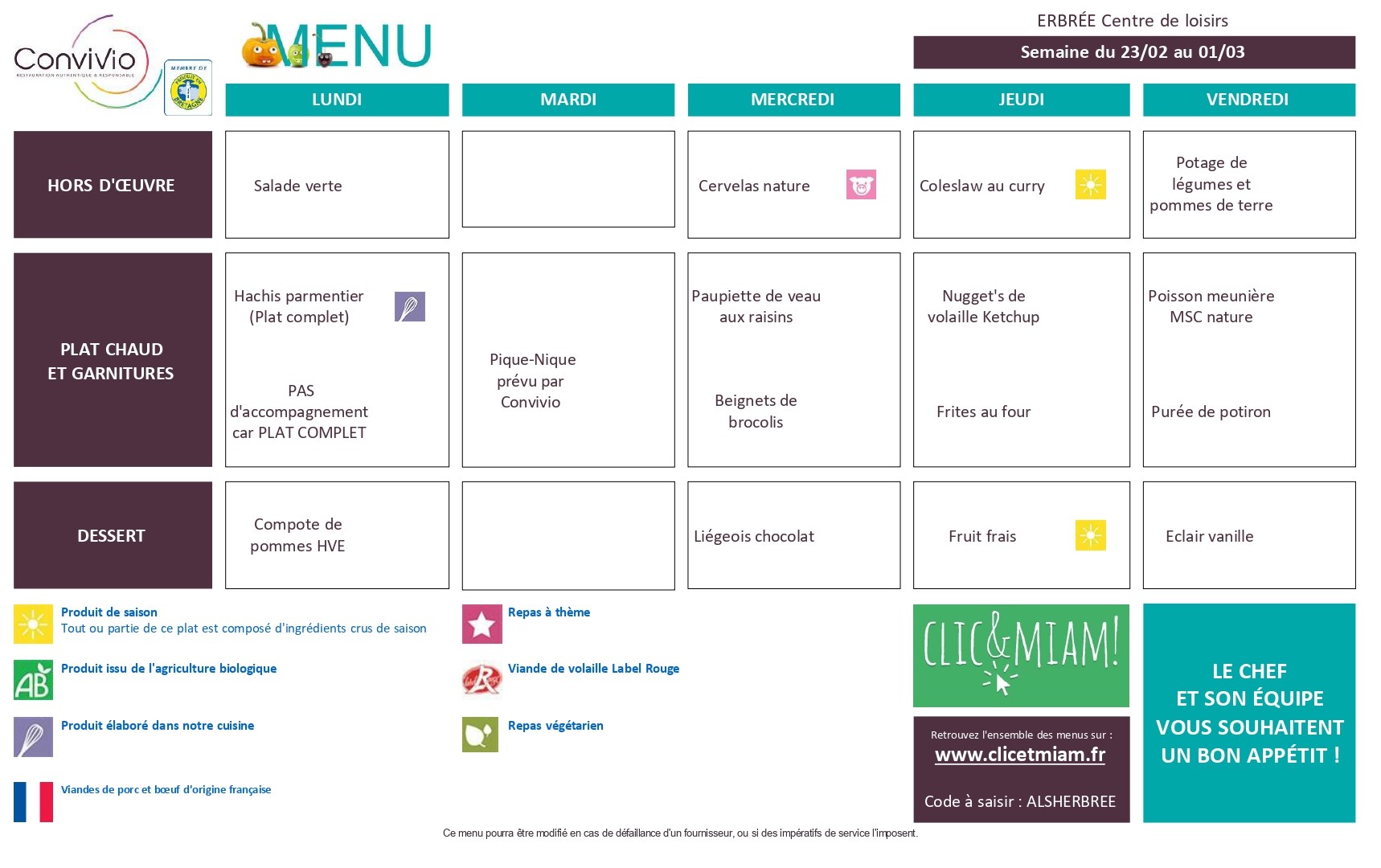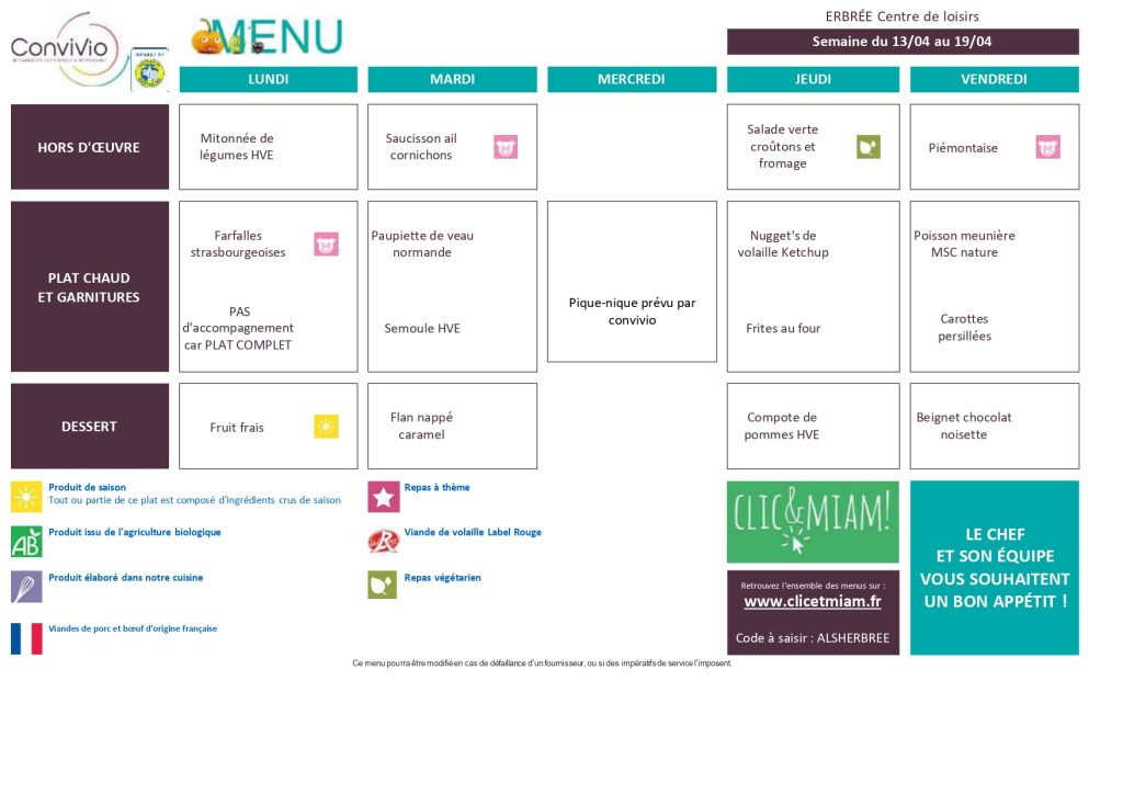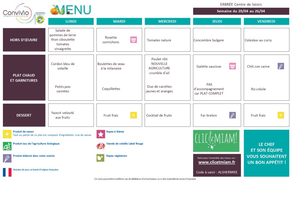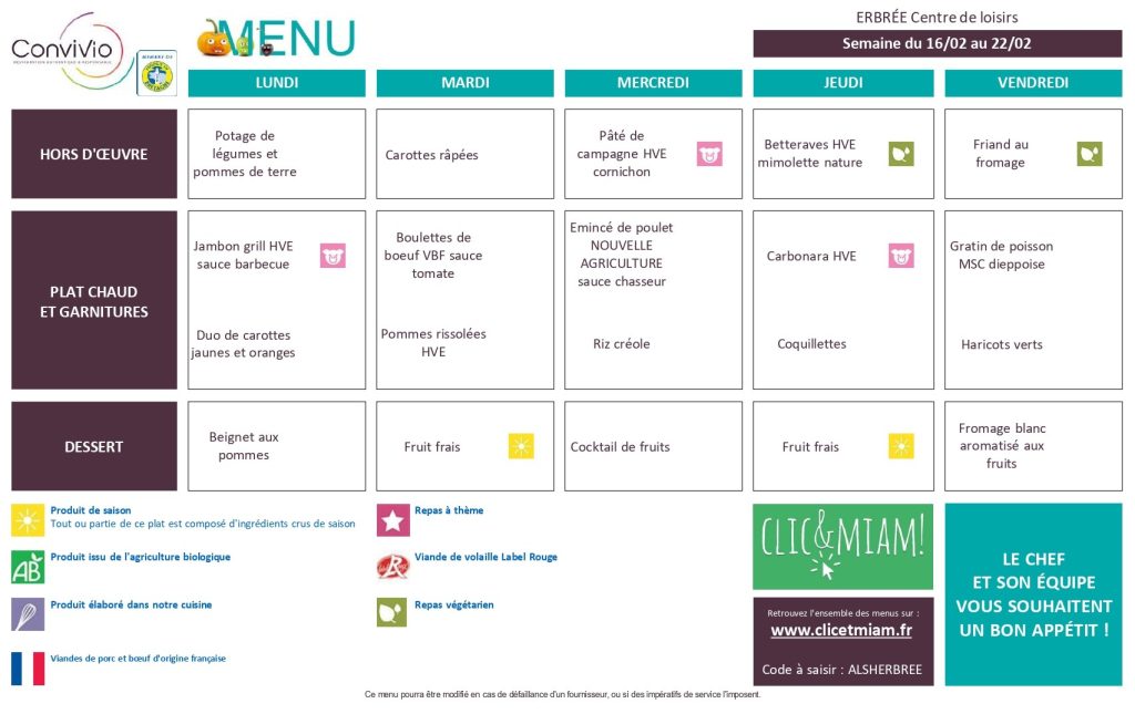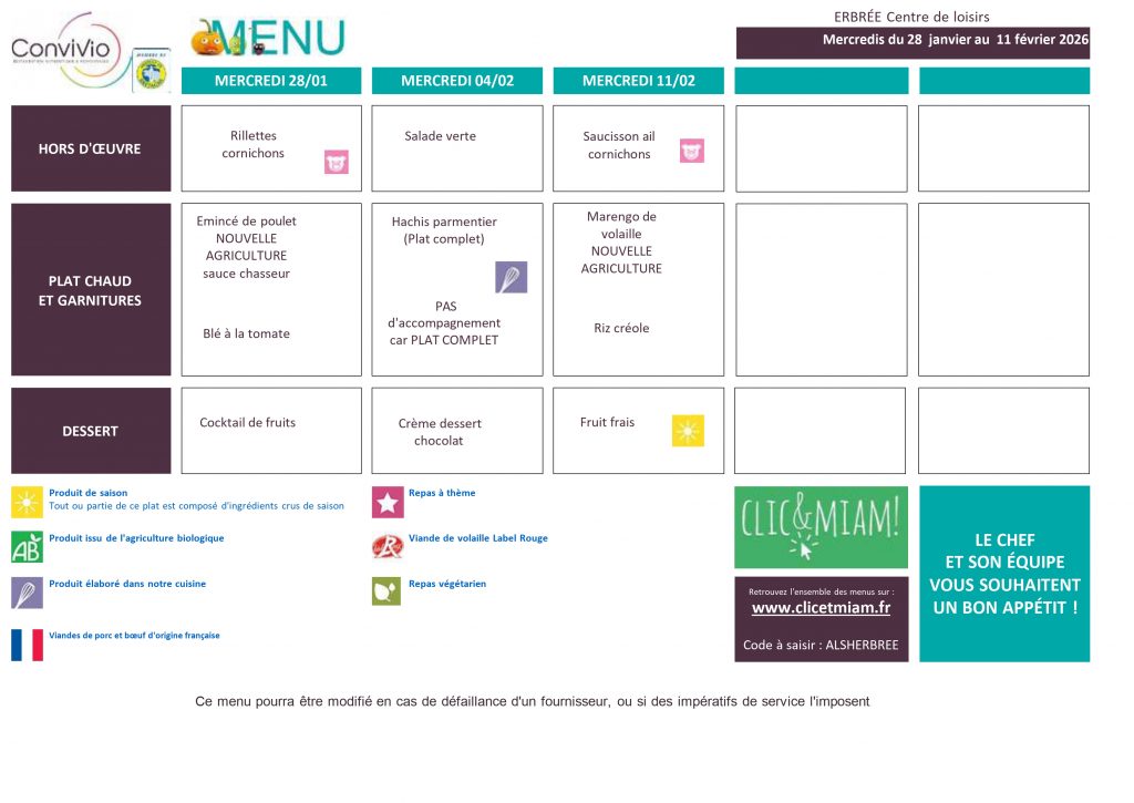 Voici les menus mis en ligne pour consultation.