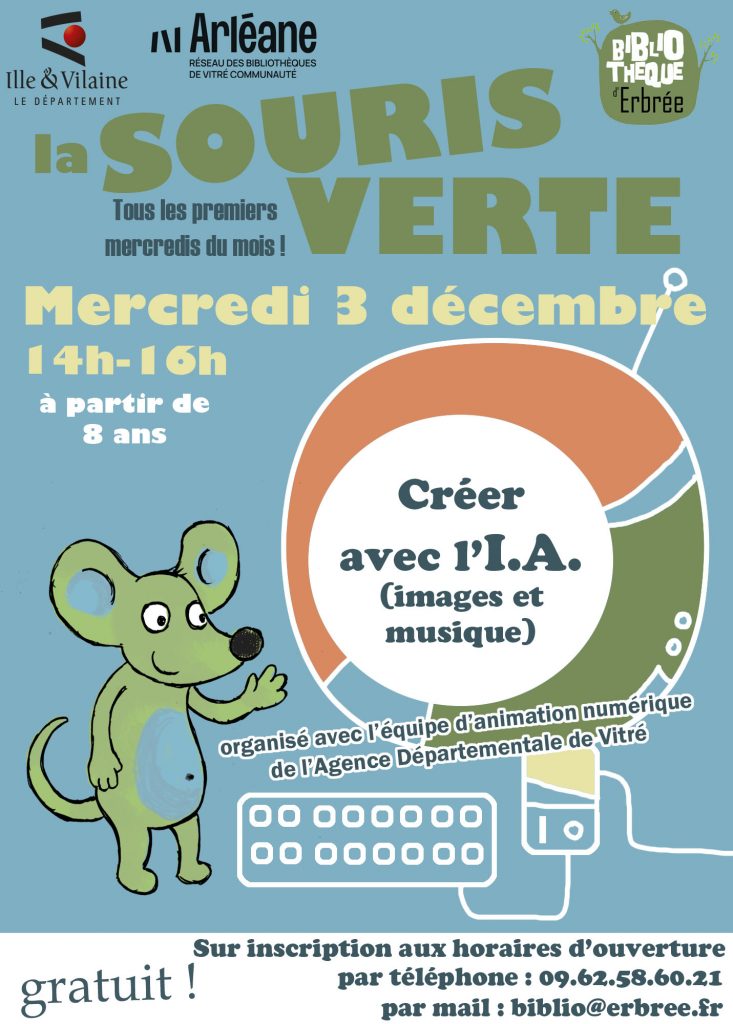 Bibliothèque – La souris verte – Créer avec l’I.A. (image et musique) – Le 03/12